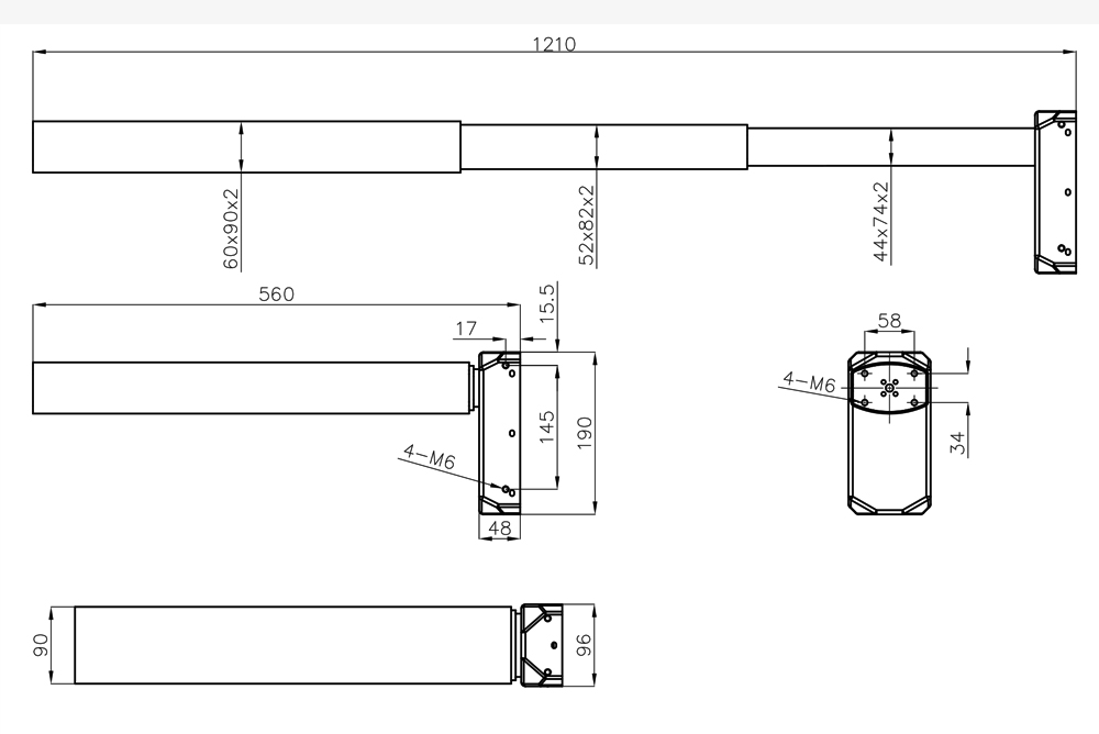 Подъемная колонна на 80 кг, 35 мм/сек, длина хода 650 мм, две секции, эллиптическое сечение 90x60 мм