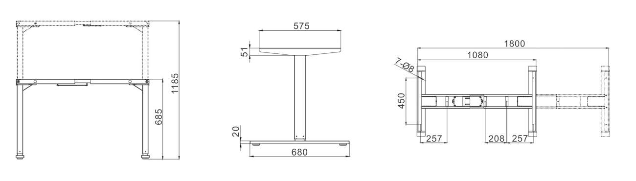 Двухмоторная конструкция с электронной синхронизацией опор обеспечивает простоту сборки рамы и исключительный уровень безопасности благодаря отсутствию наружных механических элементов, таких как валы и зубчатые рейки. По этой же причине подстолье обеспечивает минимальный уровень шума.